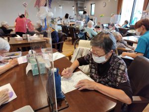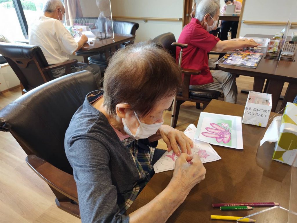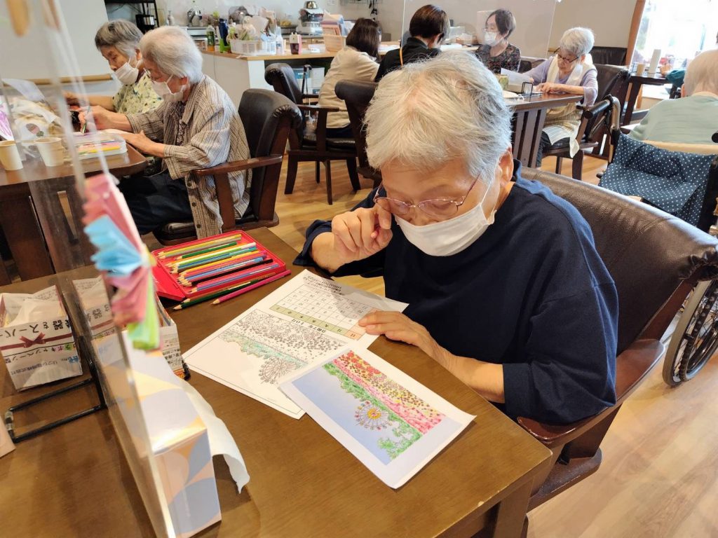 月初めなので、カレンダーの色塗りに取り掛かる利用者さまも多いです!