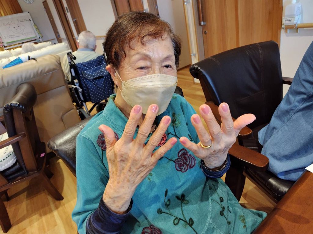 こちらの利用者さまはスタッフにマニキュアを塗ってもらい嬉しそうなご様子(*゚▽゚*)