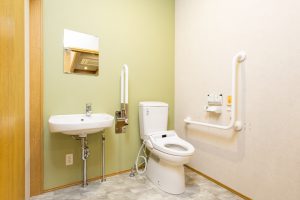 浴室暖房付きのお風呂が2か所と車いす対応可能なトイレが3か所ございます、あと静養室にはベッドが2台設置しております。