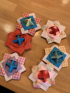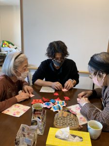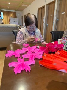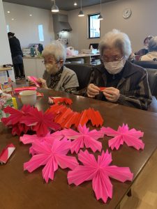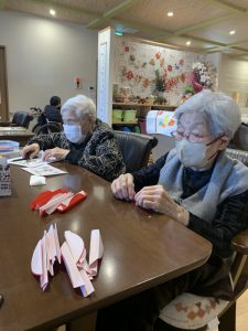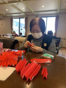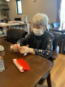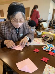 折り紙が得意な利用者さまから、こまの作り方を習いました!