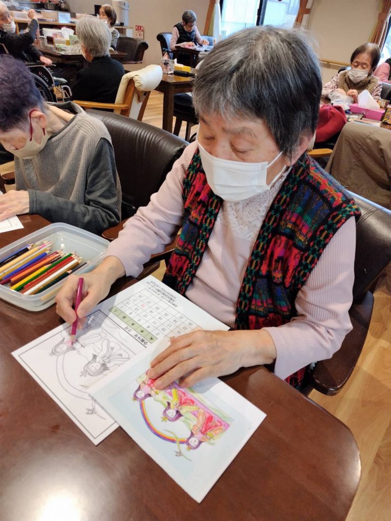 色塗りや、パズルなどの脳トレにも取り組まれてます!