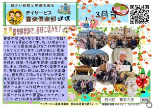 デイサービス喜楽倶楽部では、毎月「喜楽倶楽部通信」を発行しています。