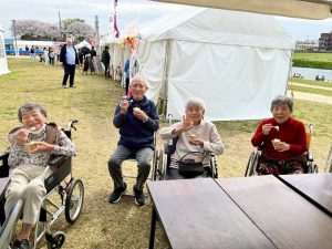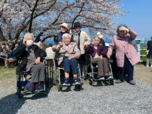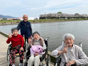桜も満開に咲き誇っているのでお散歩と外出レクを兼ねまして